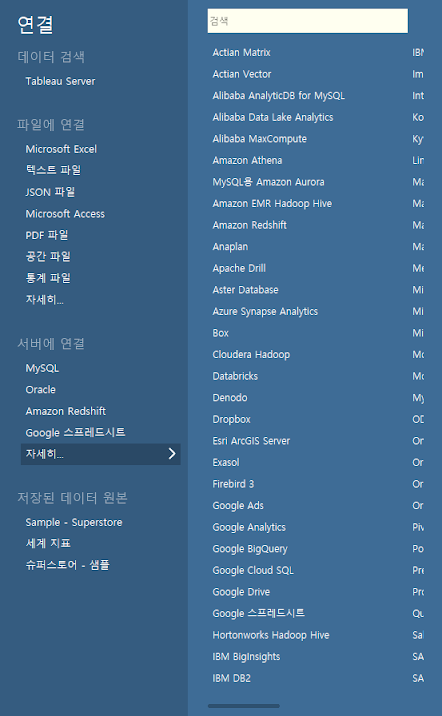 Tableau 같은 경우 다양한 장소의 데이터를 추출해올 수 있어 자신이 사용하는 환경에 맞게 사용하면 된다.