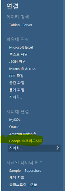 Tableau을 사용하는 과정에서 외부망 혹은 다른 장소에서 작업을 해야하는 경우도 있을 수 있어 구글스프레드에 해당 내용을 업로드 해서 불러오도록 하는 것이 편하다.