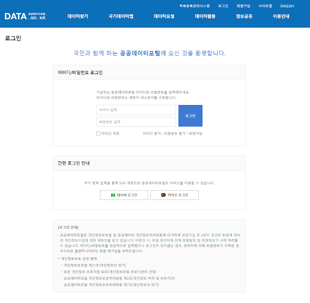 1.2) 활용신청을 눌러 회원 가입 및 로그인 후 상세 현황 접근 권한 취득