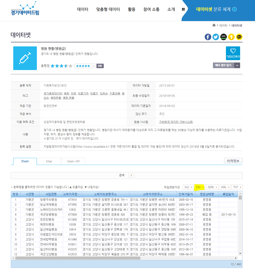 1.2) 경기도 데이터 드림 접속해서 CSV 저장