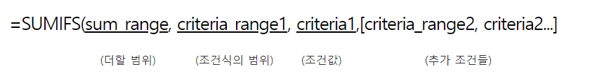그럼 SUMIFS의 기본적인 함수 모양부터 보겠습니다.