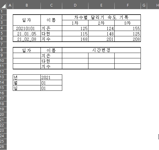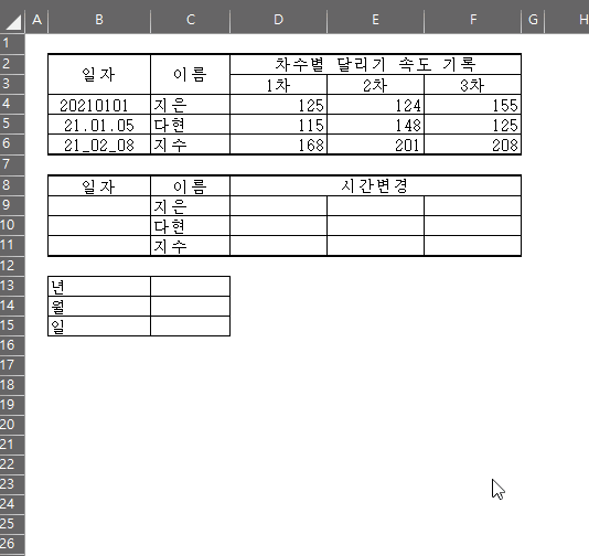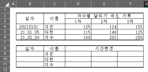 데이터는 달리기 시간을 예시로 들어서 만든 간단한 데이터입니다.