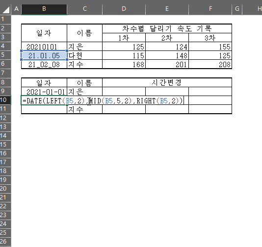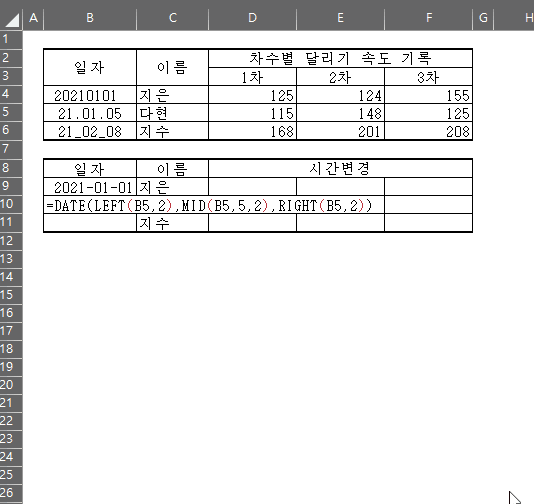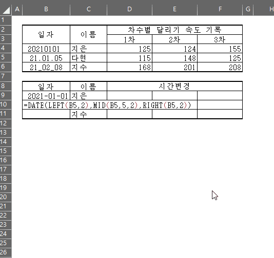 1. LEFT, MID, RIGHT 함수를 이용하여 날짜 추출하기