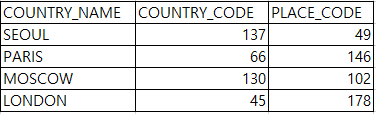 데이터의 순서가 COUNTRY_CODE가 앞이어야 된다면 순서를 바꿔서 작성해주면 됩니다.