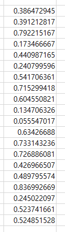 모두 RAND 함수의 값 입니다. RAND 값은 0~0.99999.... 의 값 중 하나가 임의로 나오게 됩니다.