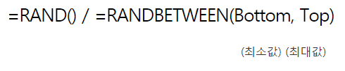 이것보다 좀 더 쉬운 방법으로 원하는 값의 정수 범위 안에서 랜덤을 구하기 위해선 RANDBETWEEN을 쓰는 것이 더 좋습니다.