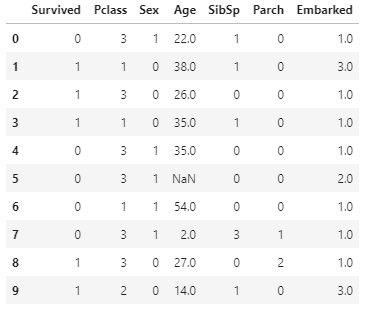 문자열로 표기되어 있는 Embarked와 Sex를 replace 하여 숫자 값으로 변경하였습니다.