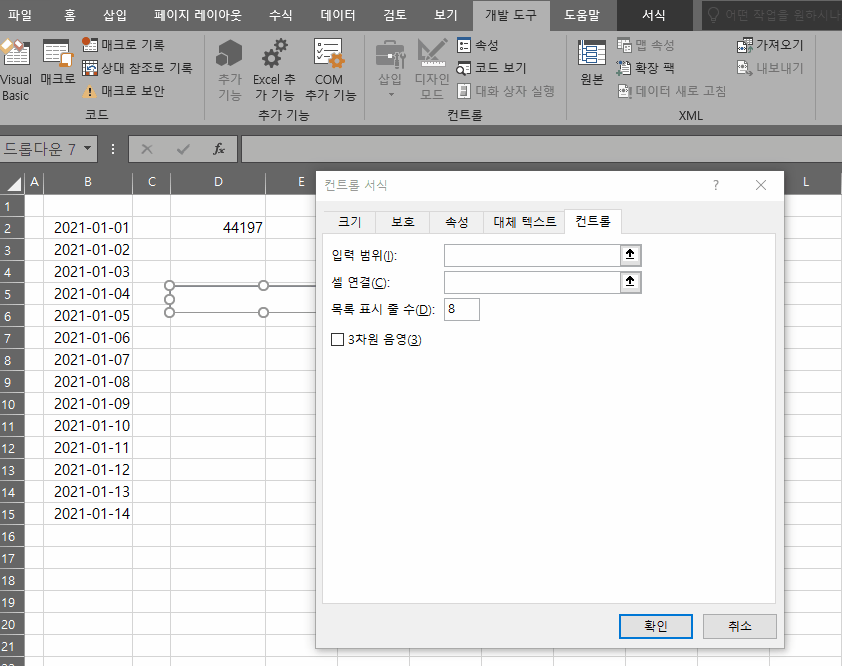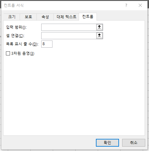 그리고 셀 연결은 이 콤보 박스로 변경되는 셀의 위치입니다.