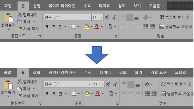 개발도구 탭은 탭에서 우클릭을 한 후 [리본 메뉴 사용자 지정]을 선택한 후 [개발 도구]를 추가해주면 됩니다.