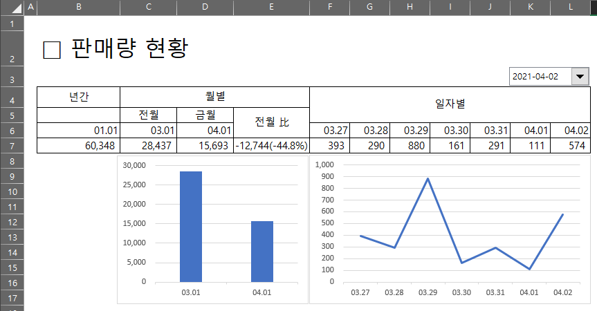 간단하게 조금만 추가해준다면 이런 식으로 전월, 금월 값을 불러와서 표현하거나