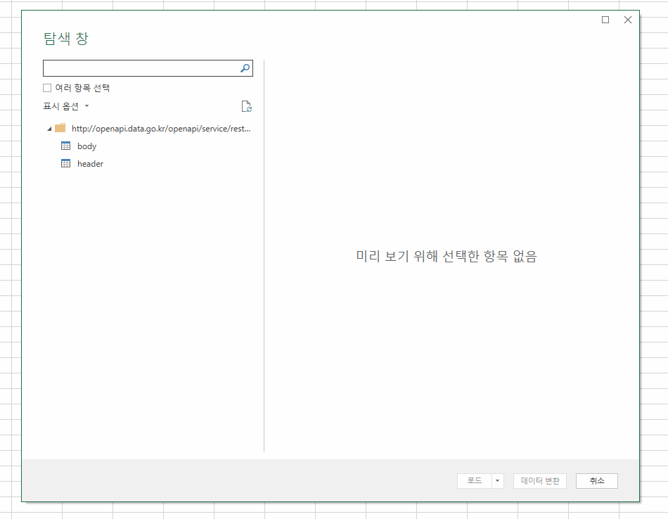 URL을 통해서 데이터를 로드한 뒤 데이터 변환을 통해서 테이블을 불러옵니다.