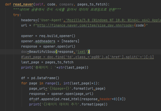 확인 결과 위에 말한 것처럼 네이버 파이낸스가 웹크롤링을 막으면서 발생하게 된 문제였다.