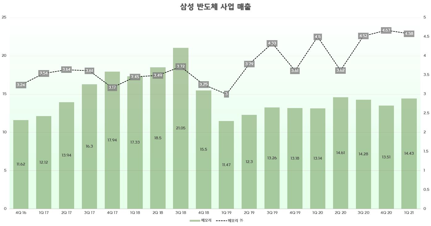 상황은 이렇지만 그래도 삼성의 반도체 사업부 매출은 꾸준히 증가하고 있습니다.