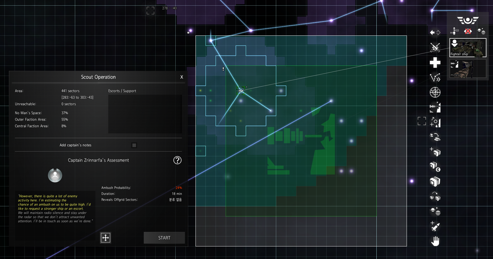 기존에도 섹터의 광물 수집 / 함선 분해 / 수리 / 전투의 기능은 있었지만