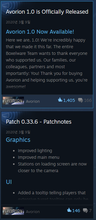 20년 3월 얼리 액세스를 성공적으로 종료하고 1.0 패치가 이루어졌다.