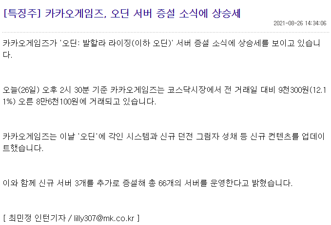 자연스럽게 오딘의 기댓값이 폭증하면서 카겜의 주가를 견인했다.