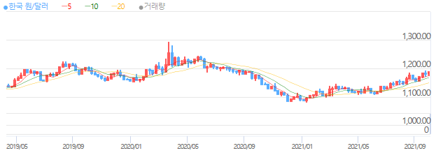 그 덕에 환율은 점점 떨어져서 1,100원 이하까지 갔던 적도 있었다.