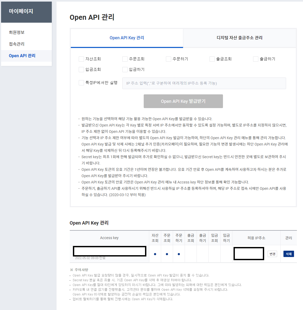 Access Key와 Open API Key는 매우 중요하니 별도의 장소에 보관해두도록 하자